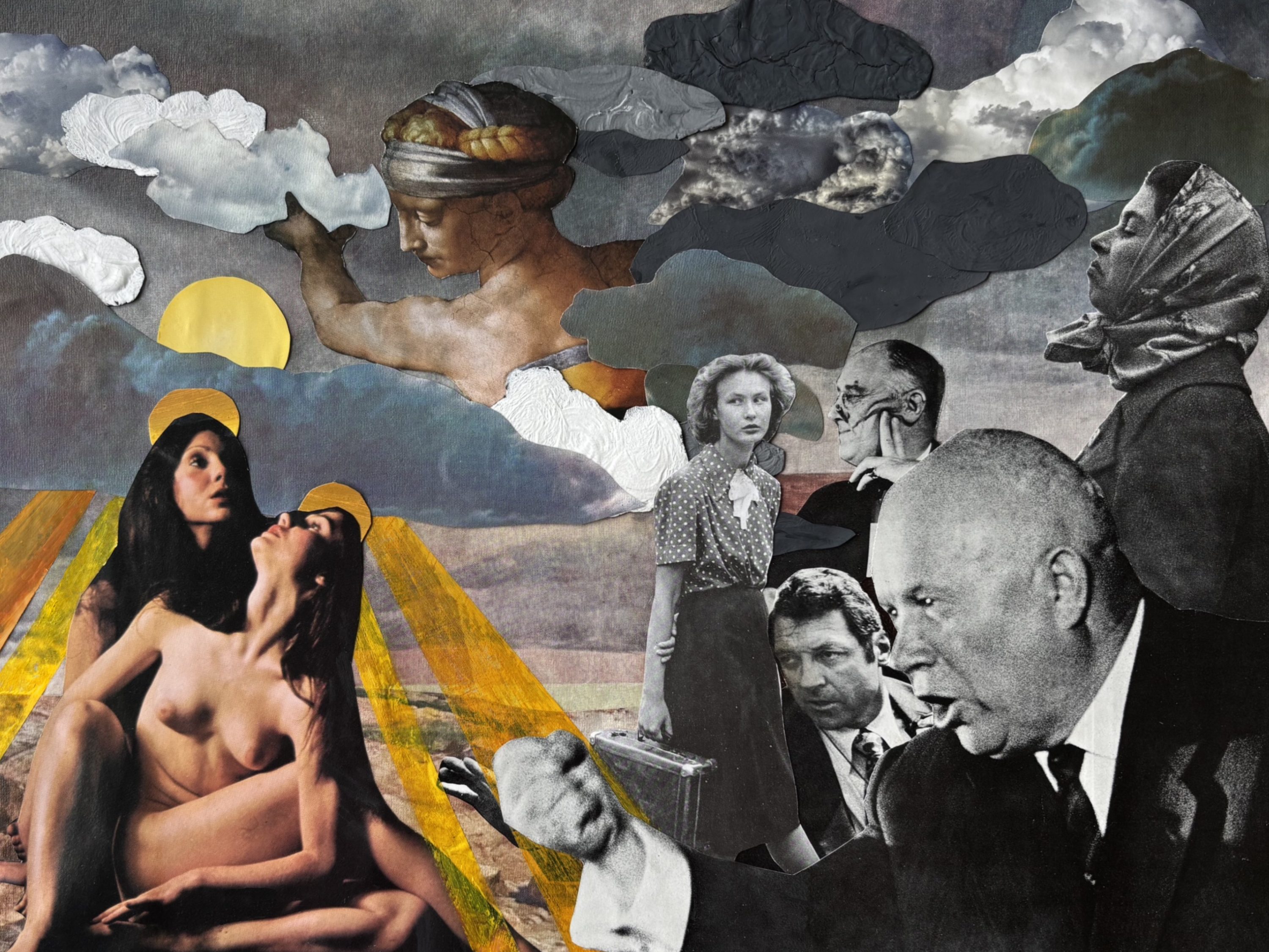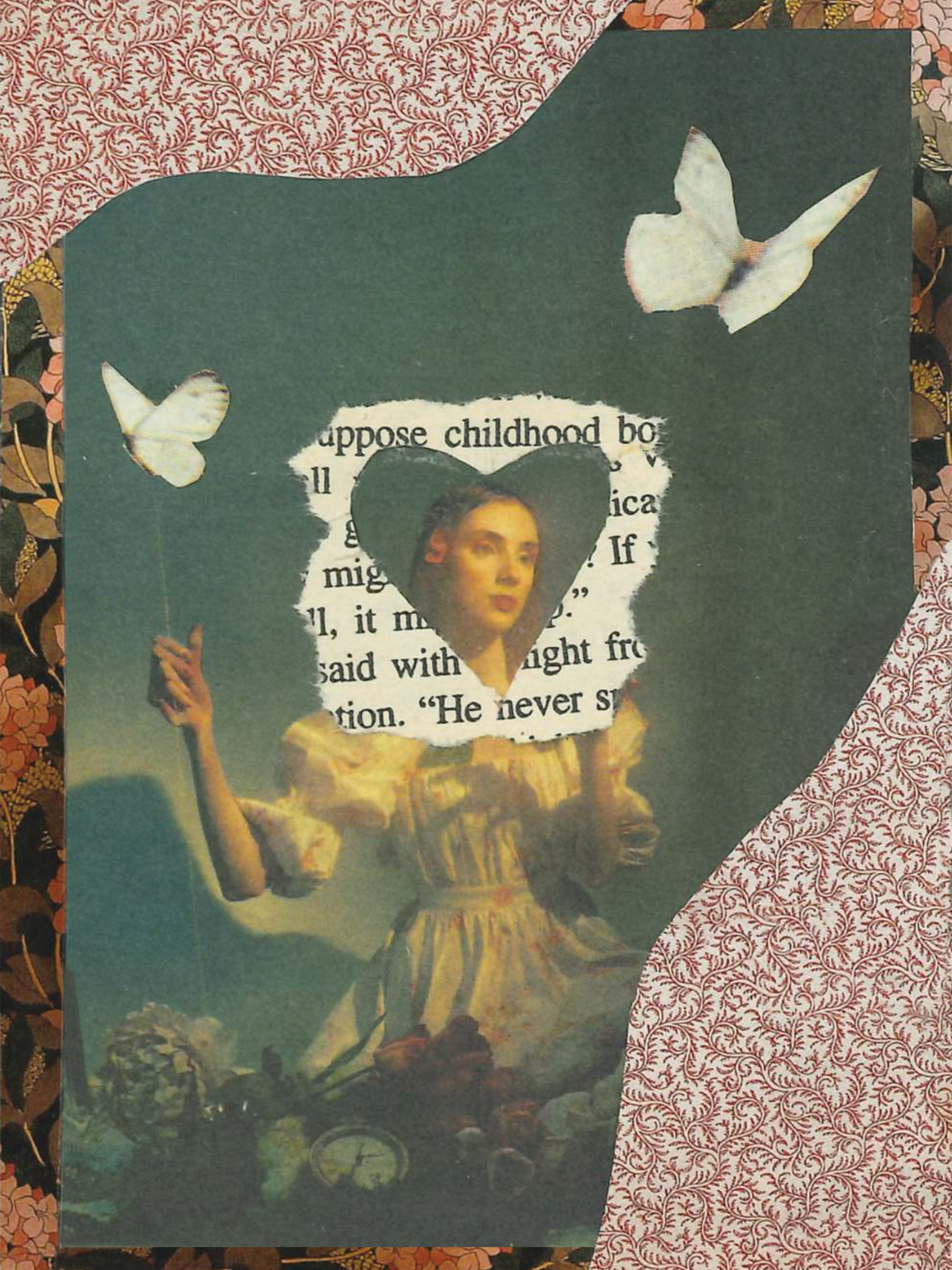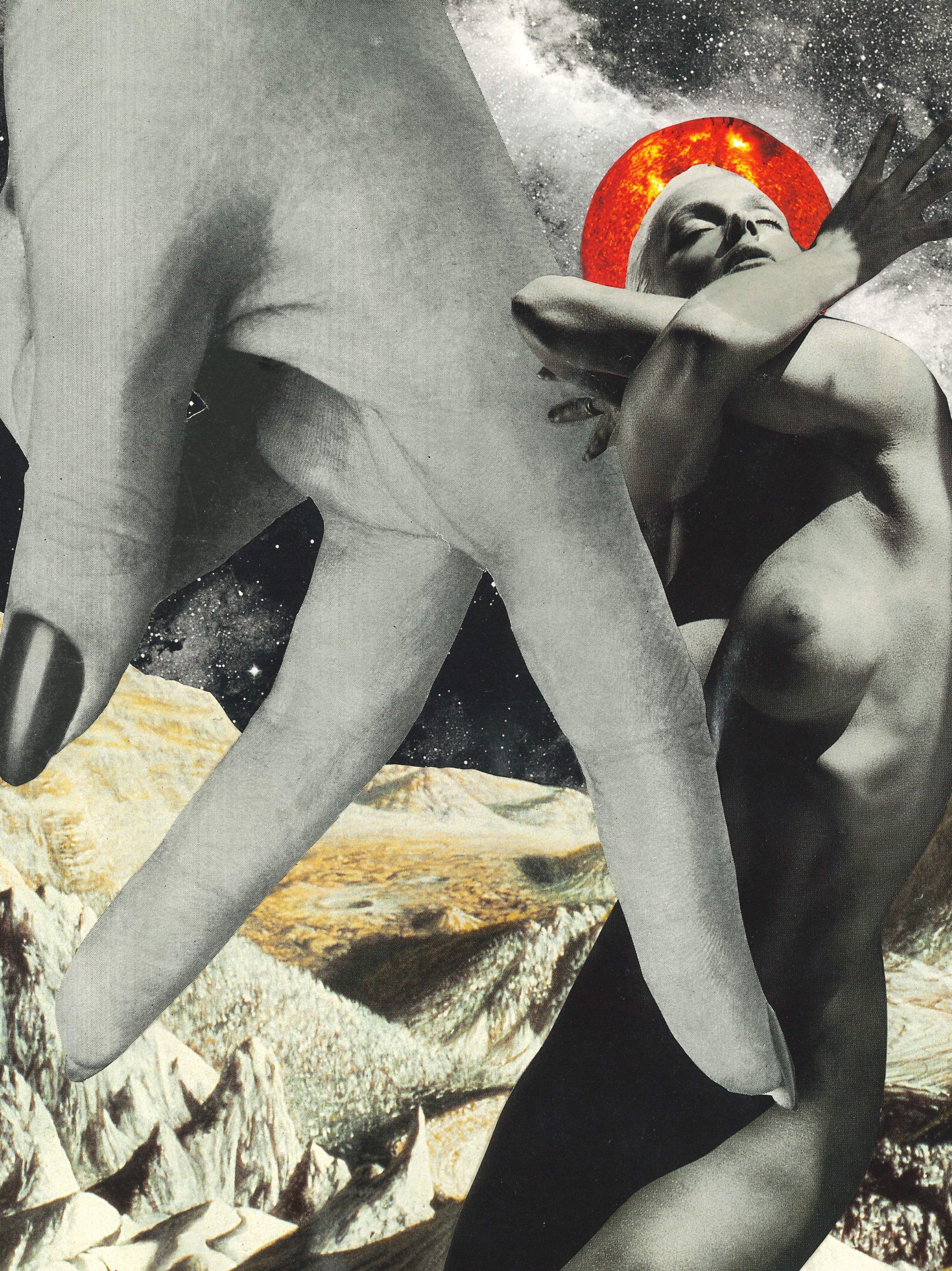As a visual artist, I use mixed media and collaging methods of expression. My work often surrounds my experiences as a queer, neurodivergent, and disabled individual, and the grief and beauty I find in those experiences. I try to use recycled and materials whenever I can, turning something that might’ve been discarded into a new piece of art.